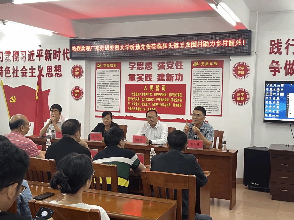 在乳源县桂头镇王龙围村党群服务中心,一行人员与当地驻村工作队、村“两委”干部开展座谈交流。广外驻镇帮扶工作队队长商杰强及王龙围村驻村第一书记、后勤党委组织员黄石胜分别介绍了帮扶镇、村的基本情况、驻村帮扶工作成效以及围绕乡村五大振兴目标的工作规划,并对后勤党委一行的到来表示欢迎。